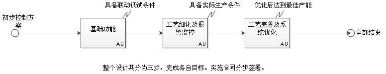 博悅信息作為自動(dòng)化合作伙伴,積極參與國(guó)內(nèi)某知名電瓷企業(yè)的新生產(chǎn)線設(shè)計(jì)和建設(shè)。該生產(chǎn)線為行業(yè)內(nèi)首創(chuàng),沒(méi)有成熟的經(jīng)驗(yàn)可以借鑒,控制系統(tǒng)設(shè)計(jì)難度極大。針對(duì)客戶(hù)訂購(gòu)的窯爐設(shè)備特點(diǎn),結(jié)合企業(yè)生產(chǎn)工藝要求,博悅信息為企業(yè)多條窯爐進(jìn)行了控制系統(tǒng)的總體設(shè)計(jì)。從控制器選型、控制網(wǎng)絡(luò)規(guī)劃,到機(jī)械電氣保護(hù),再到控制方案確定,博悅的工程師和客戶(hù)的技術(shù)團(tuán)隊(duì)一起深入交流、密切合作,不斷完善控制系統(tǒng)總體設(shè)計(jì)方案,為后續(xù)項(xiàng)目實(shí)施夯實(shí)基礎(chǔ)。 圖2:總體設(shè)計(jì)文件中關(guān)于項(xiàng)目實(shí)施階段的圖示