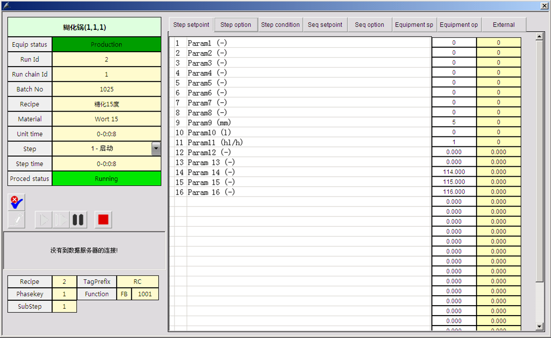 7.配方同時(shí)提供單元參數(shù)、設(shè)備參數(shù)、工藝步參數(shù)及附加參數(shù),上位機(jī)一次完成創(chuàng)建。同時(shí)匹配HMI和PLC程序組件,用于配方顯示和執(zhí)行。